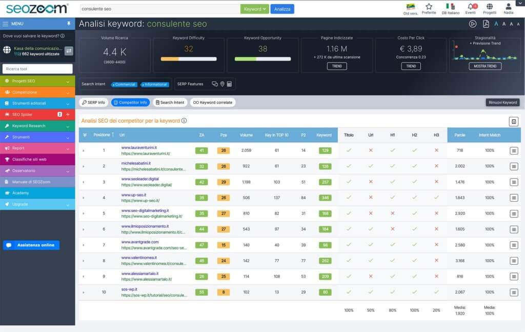 SeoZoom è uno strumento SEO tutto italiano, sviluppato specificamente per rispondere alle esigenze di chi opera nel mercato nazionale. Offre una piattaforma ricca di dati e funzionalità per analizzare la visibilità di un sito, con un’interfaccia in italiano e metriche tarate sul contesto competitivo locale.