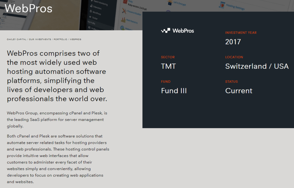 Per capire meglio la situazione bisogna dire che il gruppo di investimento Oakley Capital ha acquisito e gestisce WebPros.